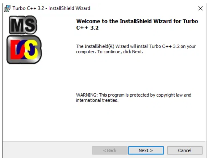 You will see the InstallShield Wizard for Turbo C/C++, click on the Next button.