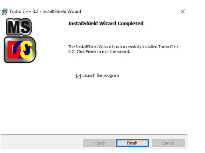 Once the installation is complete, you will see the following window, check on the Launch the program checkbox(if not already checked) and you click on the Finish to start the Turbo C/C++ IDE, to start writing the C language code.