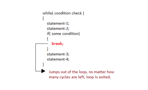 Sometimes, while executing a loop, it becomes necessary to skip a part of the loop or to leave the loop as soon as certain condition becomes true. This is known as jumping out of loop.