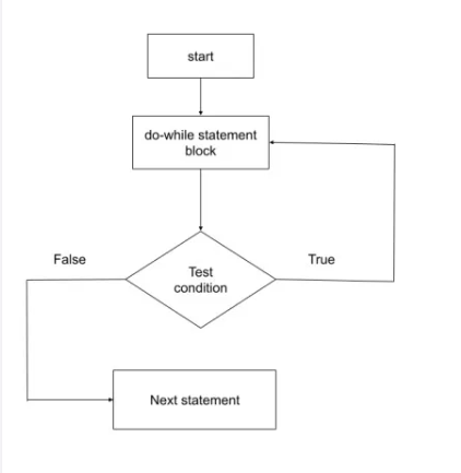We initialize our iterator. Then we enter body of the do-while loop. We execute the statement and then reach the end. At the end, we check the condition of the loop. If it is false, we exit the loop and if it is true, we enter the loop. We keep repeating the same thing unless the condition turns false.