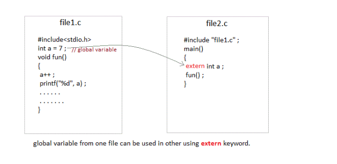 }Example using extern in the same file.