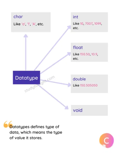 Whenever we define a variable or use any data in the C programming, we have to specify the type of the data, so that the compiler knows what type of data to expect.