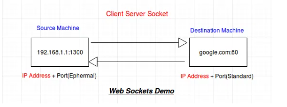 clientsocket.connect(("www.studytonight.com", 80))This happened on the client side. When the client tries to connect with the server, a random port is assigned by the operating system for the connection. This random port is called Ephermal Port. In the above illustration, 1300 is an ephermal port on the source(client) machine. The client socket is short lived, i.e as soon as the data exchange ends it closes. Now what happens on server is a bit different from client. So,let's see: