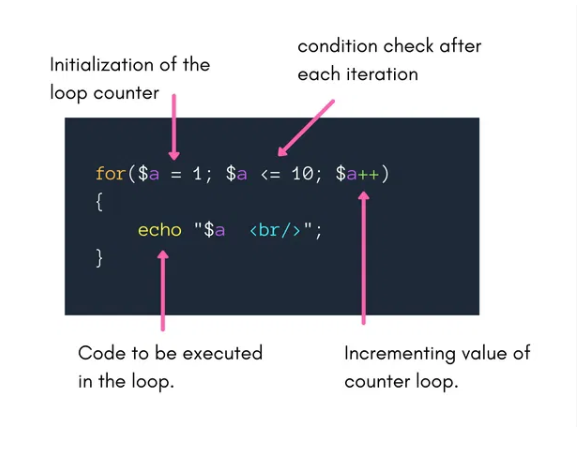 The for loop in PHP doesn't work like while or do...while loop, in case of for loop, we have to declare beforehand how many times we want the loop to run.