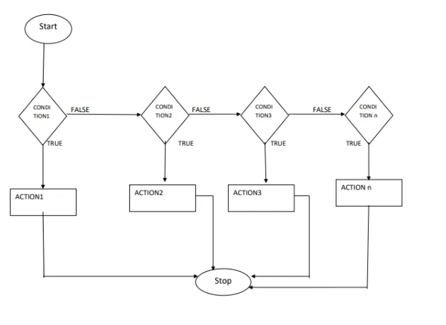 In the following syntax, it can be seen firstly condition1 is checked, if it is true, the statements following it are executed and then control moves out of the complete if block but if the condition is false then the control checks condition2 and repeats the same process. If all the conditions fail then the else part is executed.